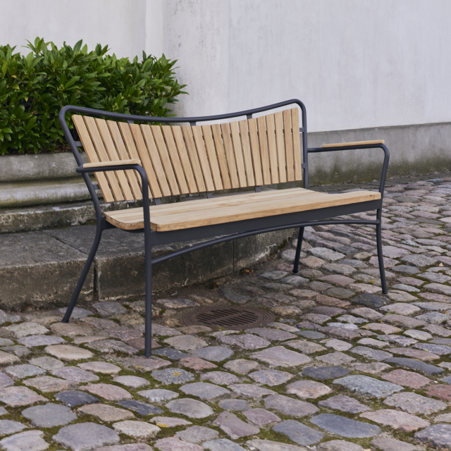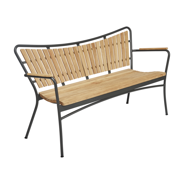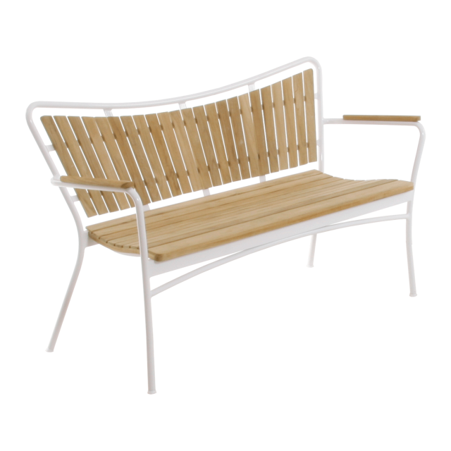 Marguerit tre-personers havebænk i bæredygtig indonesisk plantageteak og stel i pulverlakeret aluminium.