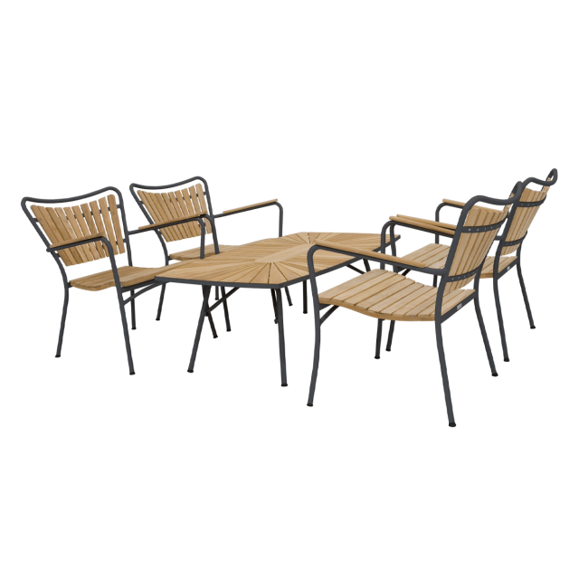 • 4 x Marguerit lounge stol - Teak / antracit