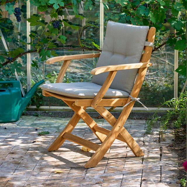Lækre og slidstærke havehynder til Dian foldestole i teak. Alle vores hynder til Dian havestolene er i 100% polyester med fiberfyld.