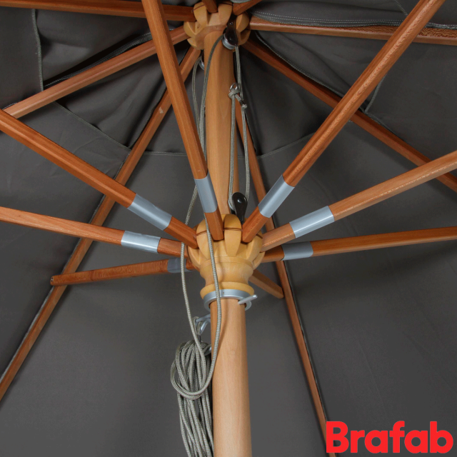 Til parasollen anbefaler vi at benytte en parasolfod på minimum 50 kg. Eksempelvis Brafabs Mito-parasolfod.