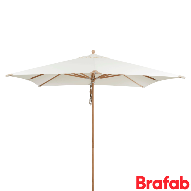 Como-parasollen fra Brafab har et klassisk og stilrent udtryk. Parasoldugen er fremstillet i slidstærkt 250gr. polyester med læderforstærkninger på parasollens hjørner samt har en overfladebehandlet vejrbestandig ramme.