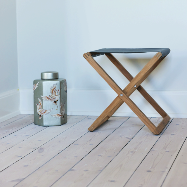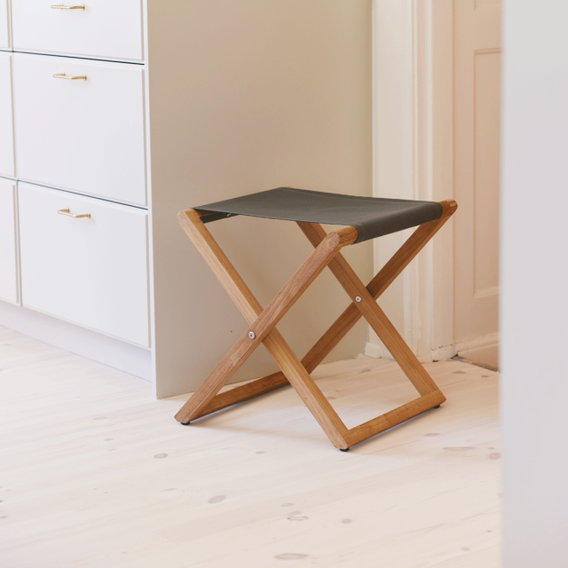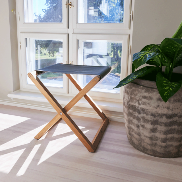 Langelinie-serien har også fået et nyt medlem. En lille foldbar skammel, der er perfekt til indretningen i hjemmet eller i dit uderum. Den har de klassiske fingerbladsamlinger du kender fra Langelinie-skamlen, men har sæde i vejrbestandig Textilene flet. På den måde kan du folde den sammen og stille den væk, hvis det bliver nødvendigt.