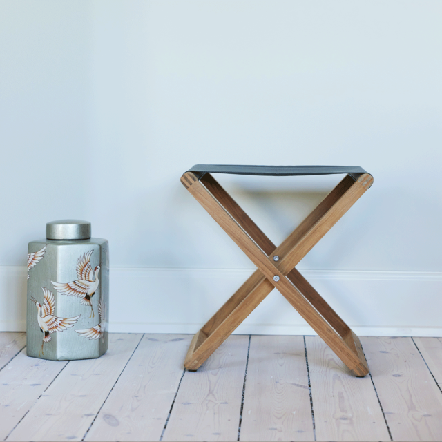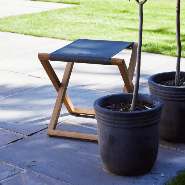 Eksklusiv foldeskammel i vejrbestandige materialer og med smukke fingerbladsamlinger.
