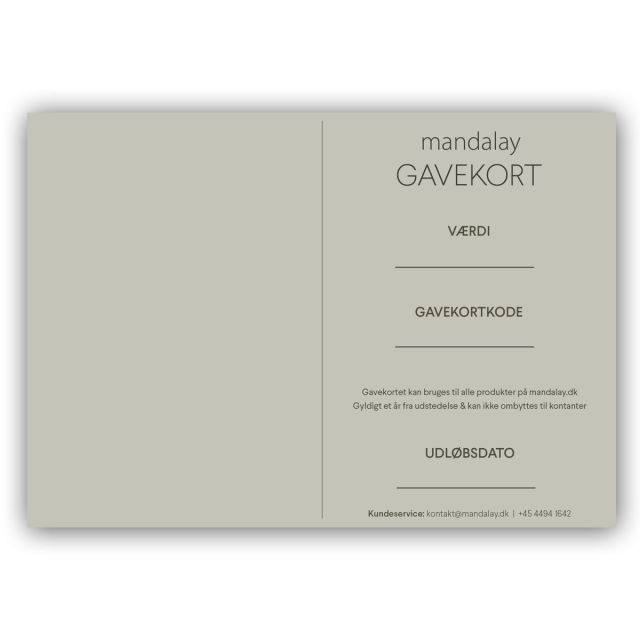 Du modtager også en rabatkode, så gavekortet kan indløses på mandalay.dk
