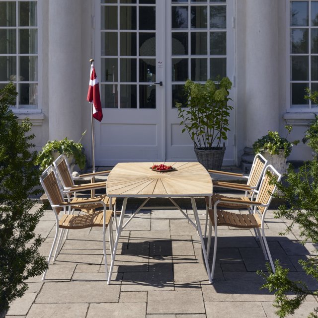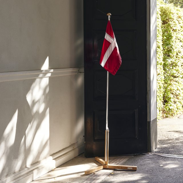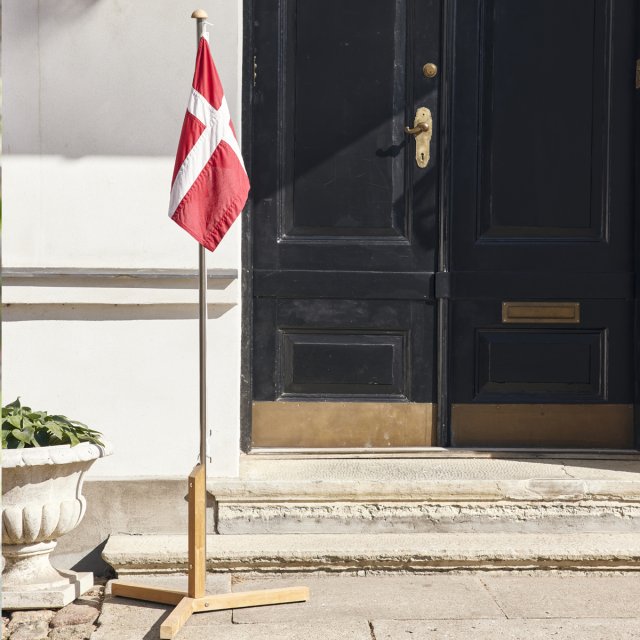 Flagstang i teak & rustfrit stål med Dannebrogsflag. Flagstangen er i rustfrit stål og med fod og knop i bæredygtig indonesisk teak.