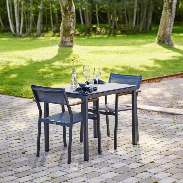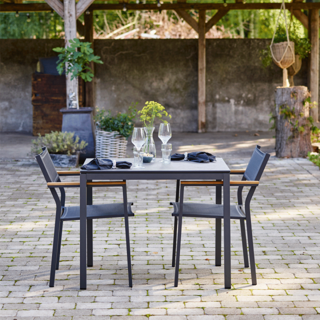 Elba havebord i praktisk design. Med en længde på 65 cm og en bredde på 90 cm som vi kender det fra bl.a. Toscana havebordene, er det muligt at sætte de fleste havestole til bordet. Bordplade er i højtryks kompaktlaminat og stellet i pulverlakeret aluminium. Bordpladen er i et slidstærk og ridsefast materiale, der tåler vand, olie, frost og meget mere.