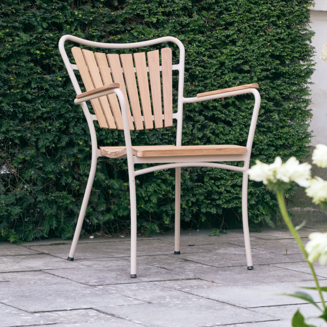 MArguerit havestol med taupe stelfarve og indonesisk plantageteak.