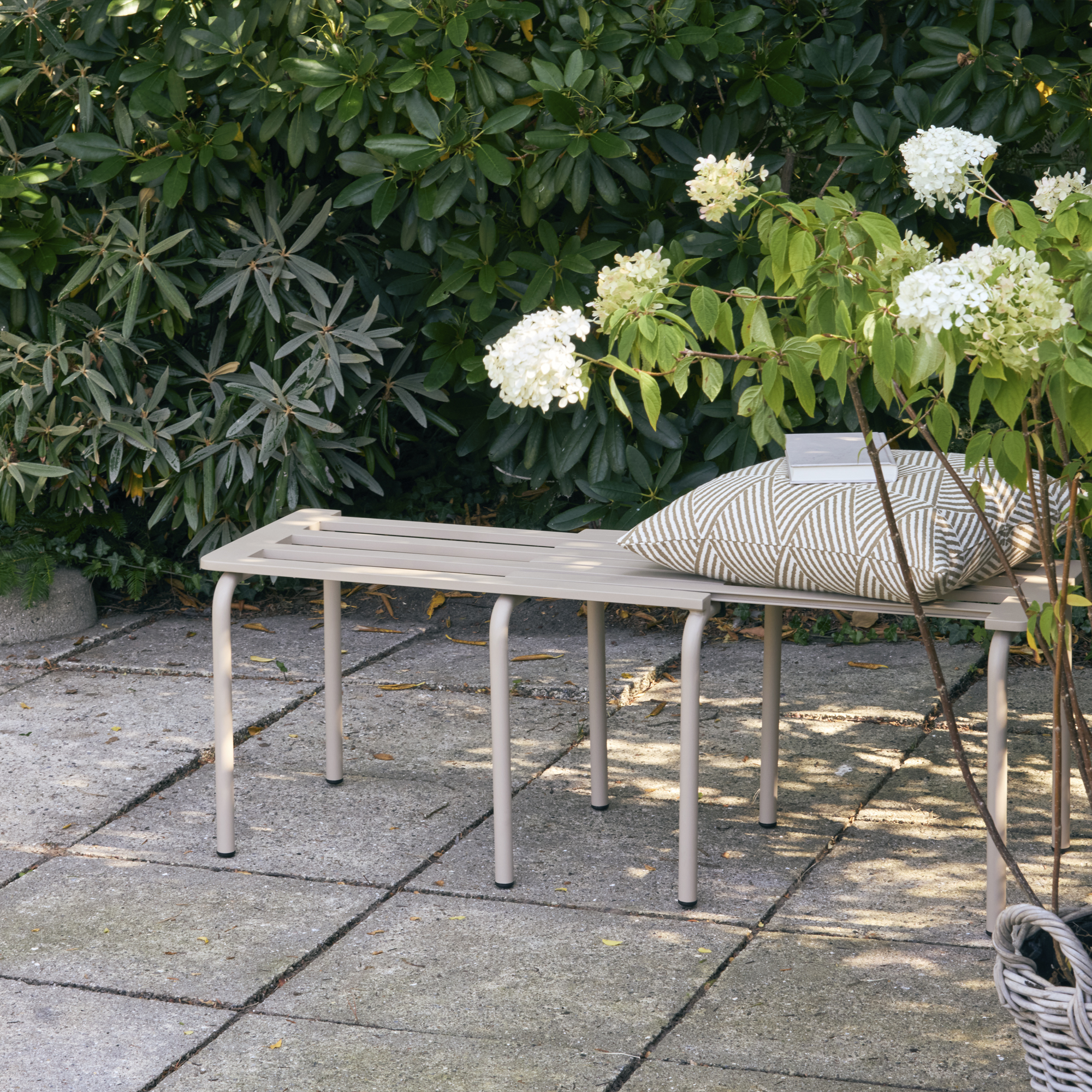 Praktisk udtræksbænk i vores Ivy-kollektion. Ivy udtræksbænken står måske til daglig sammenslået op langs væggen på terrassen eller altanen, men ubesværet kan den udvides til et ekstra sæde, der kan blive brug for. Du kan selvfølgelig også vælge at bruge den som lille bord ved siden af Ivy loungeren.
