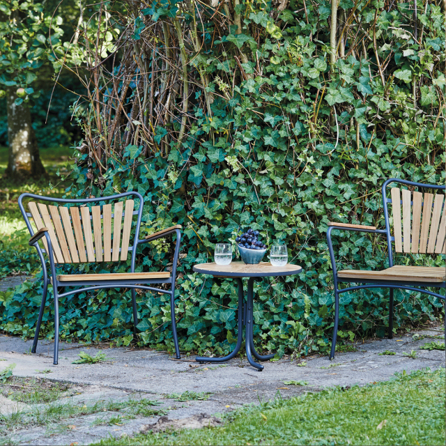 Loungestolen passer perfekt til afkrogen i haven - eller til en skyggeplads under æbletræet. Sideborde er også perfekt ved siden af Marguerit havebænken.