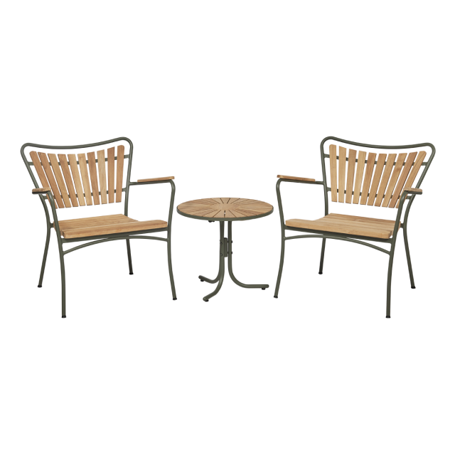 • 2 x Marguerit lounge stol - Teak / olivengrøn