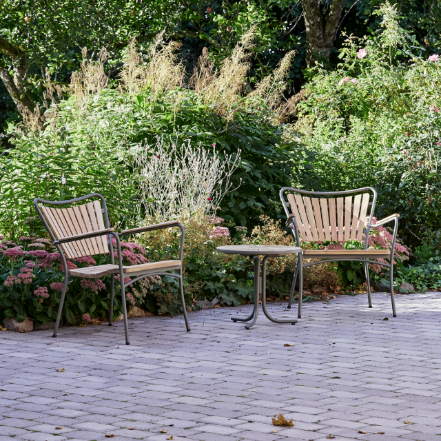 Loungestolen passer perfekt til afkrogen i haven - eller til en skyggeplads under æbletræet. Sideborde er også perfekt ved siden af Marguerit havebænken.