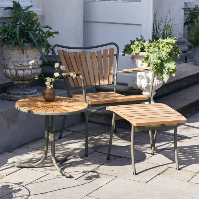 • 1 x Marguerit loungebord Ø50 - Teak / olivengrøn