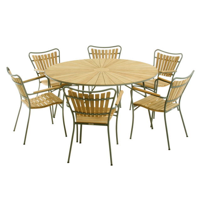 • 6 x Marguerit havestol - Teak / olivengrøn