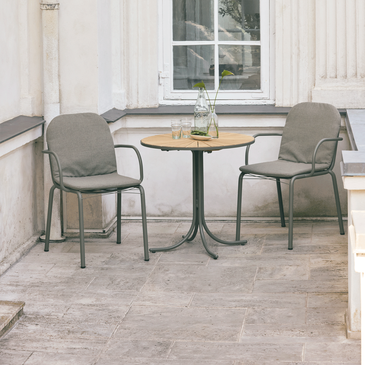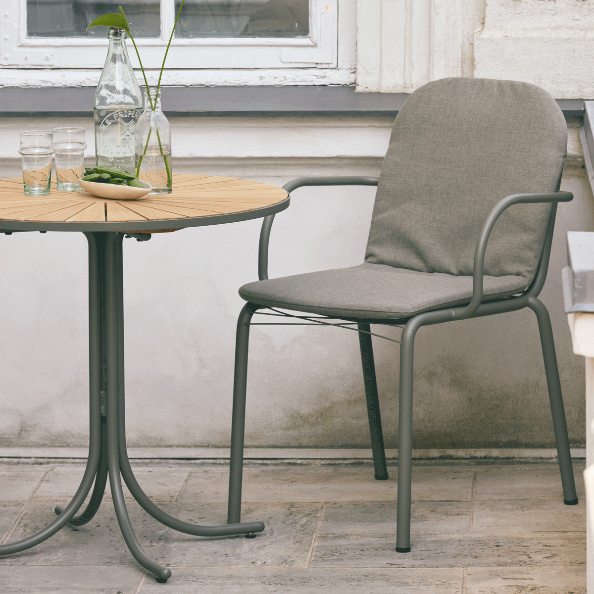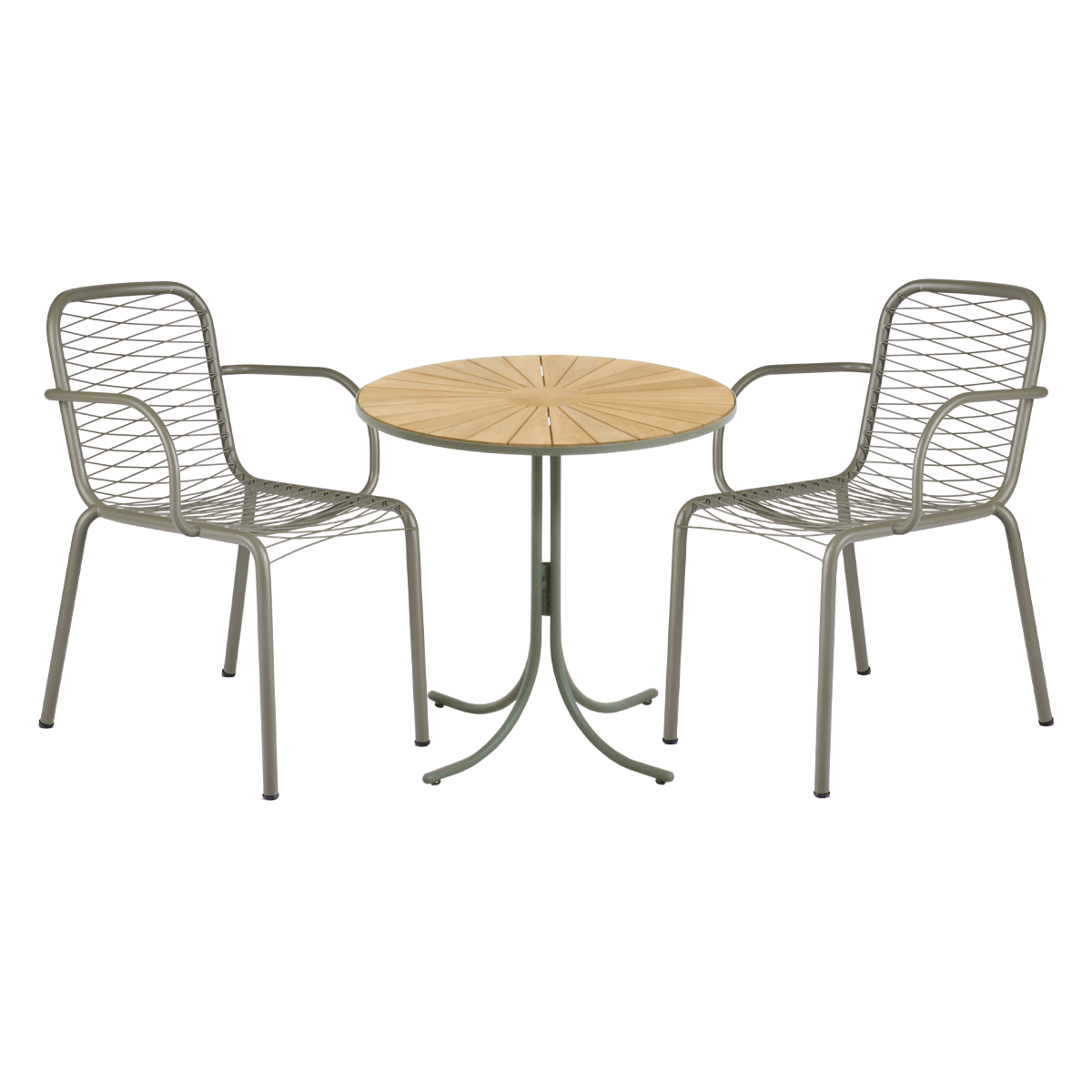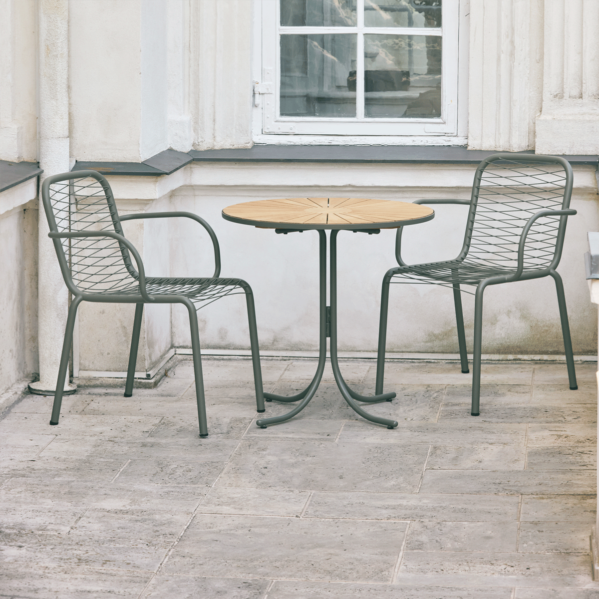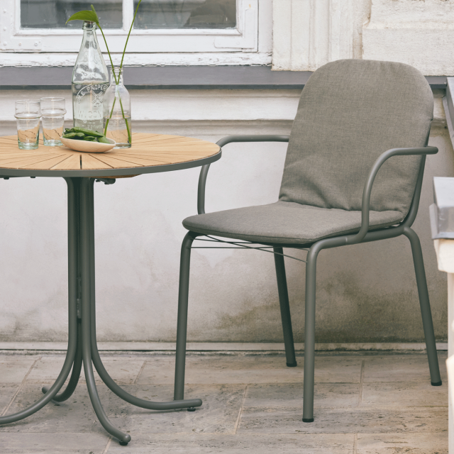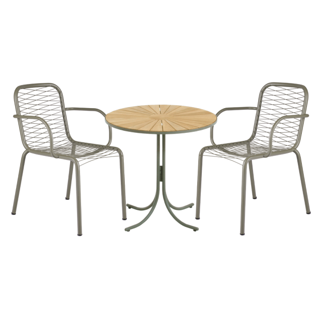 Nyt cafésæt med Marguerit og Ivy Wire stol i den eksklusive olivengrønne stelfarve