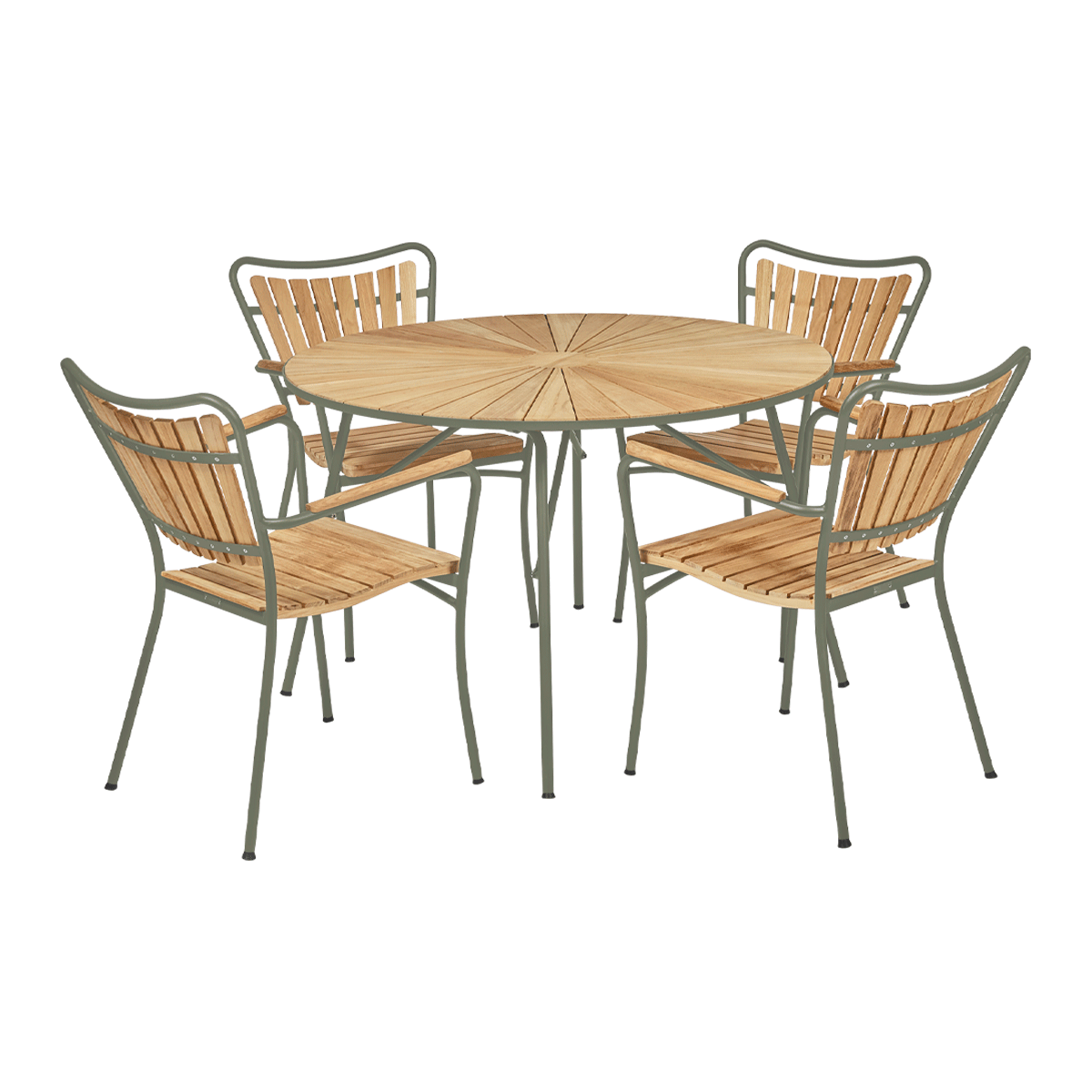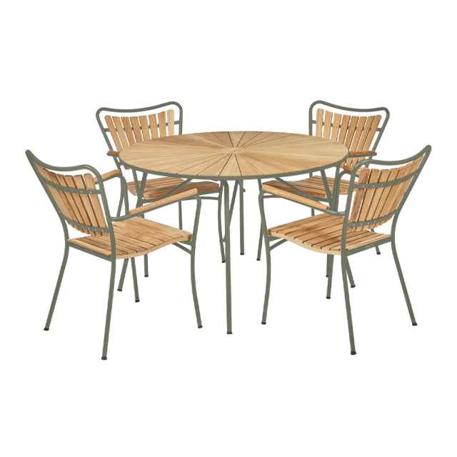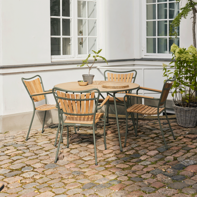 • 1 x Marguerit havebord Ø110 - Teak / olivengrøn