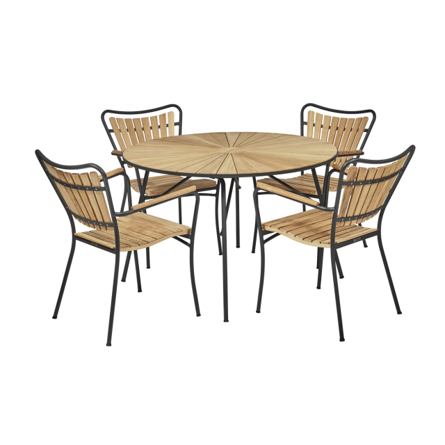 Marguerit havemøbelsæt i antracit - Ø120 med 4 stole
