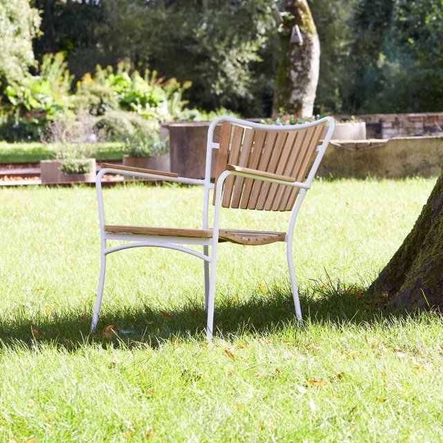 Loungestolen passer perfekt til afkrogen i haven - eller til en skyggeplads under æbletræet. Sideborde er også perfekt ved siden af Marguerit havebænken.
