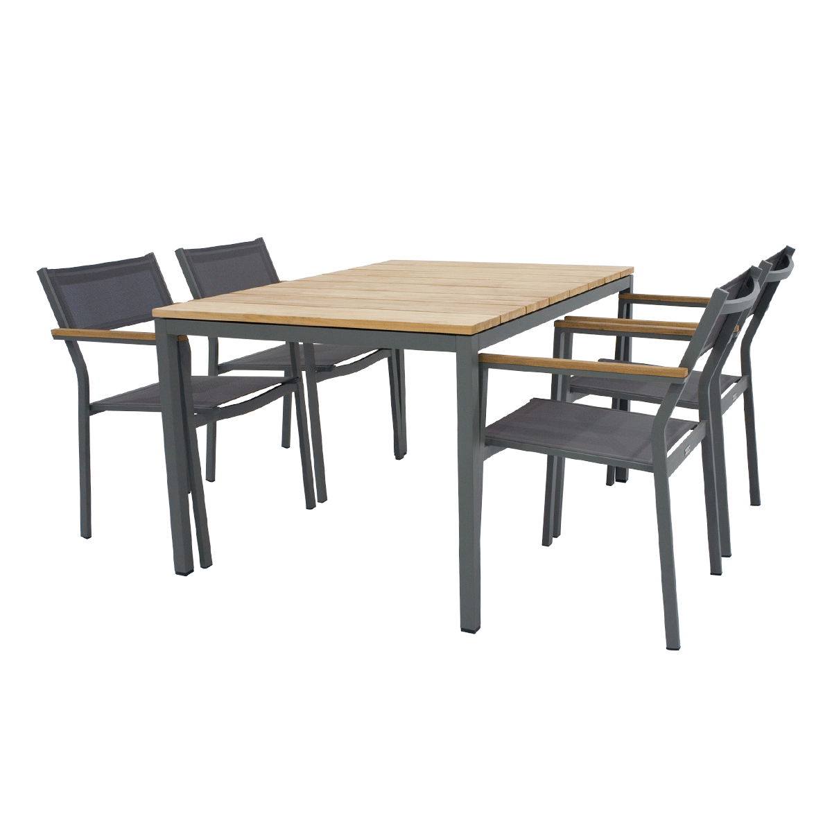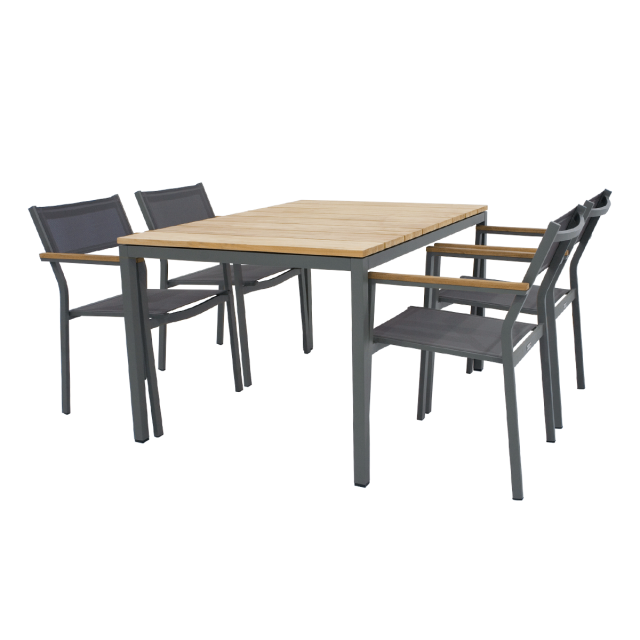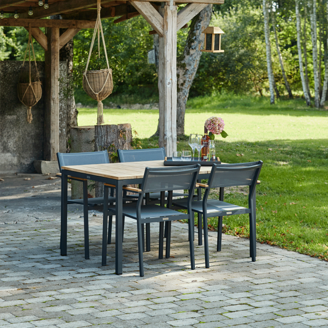 Det klassiske Toscana havebord og Elba stabelbare havestole - alle i den populære antracitte stelfarve. Et klassisk havesæt med plads til 4 - 6 personer.