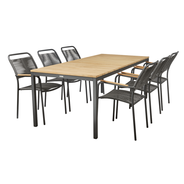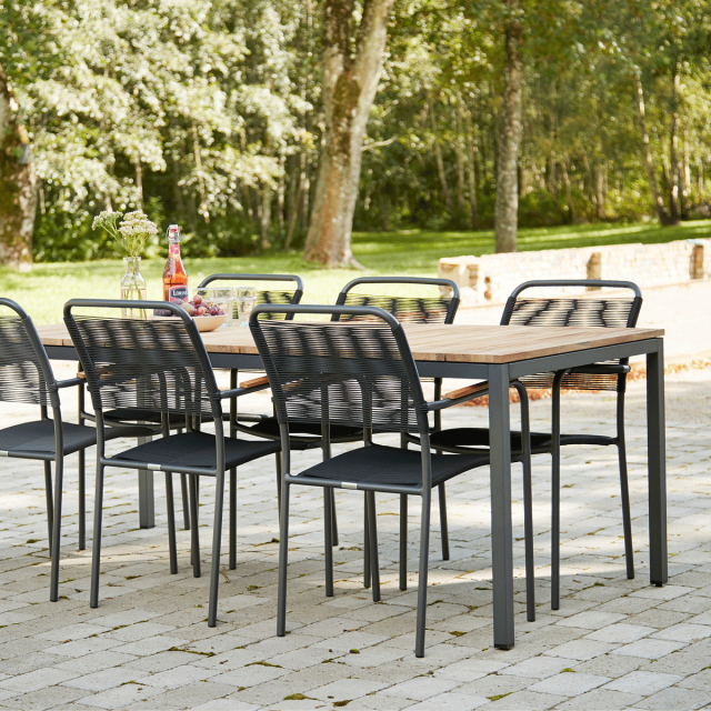 • 6 x Verona havestol - teak armlæn - Antracit / antracit