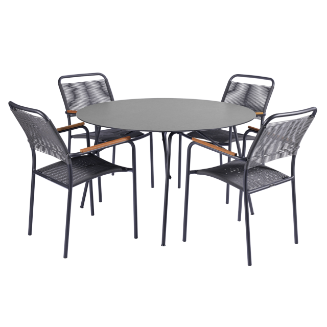 • 4 x Verona havestol - teak armlæn - Antracit / antracit