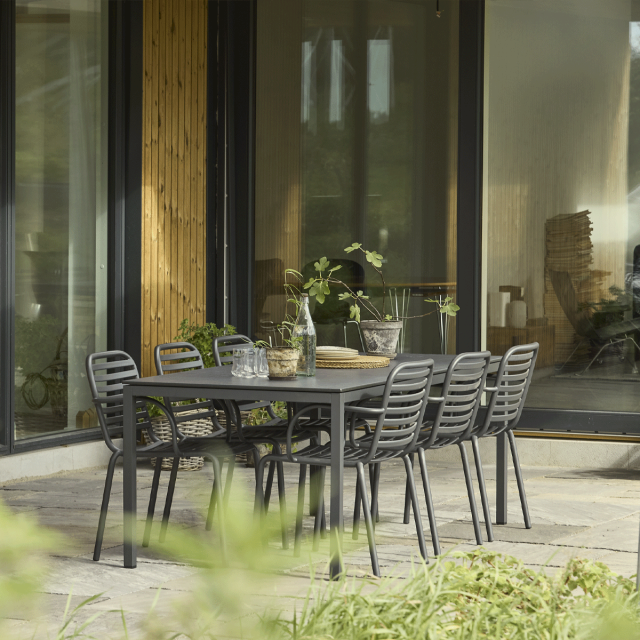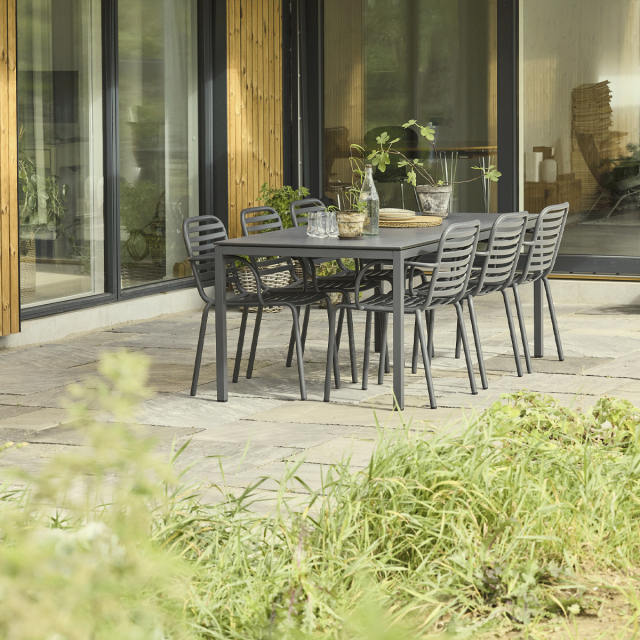Pure-bordet er vores bud på et helt vedligeholdelsesfrit havebord. Bordet er 197 cm langt og 90 cm bredt, og passer til altan og lille terrasse - eller som tillægsbord til de længere modeller.  Bordpladen i kompaktlaminat har fået en flot og afdæmpet overflade med skifer-look. Designet er minimalistisk - og materialerne er HELT vedligeholdelsesfrie. For at gøre bordet helt vedligeholdelsesfrit, har vi valgt at bruge den slidstærke, formstabile og ikke mindst ridsefaste kompaktlaminat. Det påvirkes ikke af temperatursvingninger - det er ideelt til det danske vejr. Med en fuldplade får du ikke alene et robust bord - men også et flot helhedsindtryk i designet
