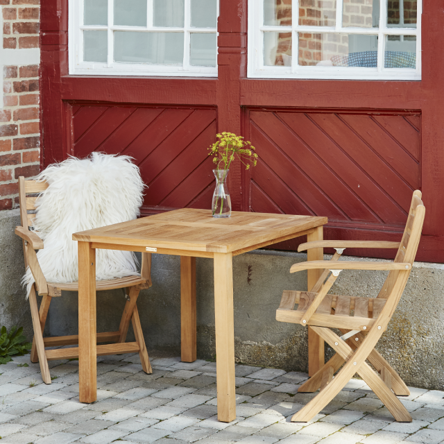 Lille havesæt i bæredygtig indonesisk plantageteak - til altan, balkon eller den lille terrasse.