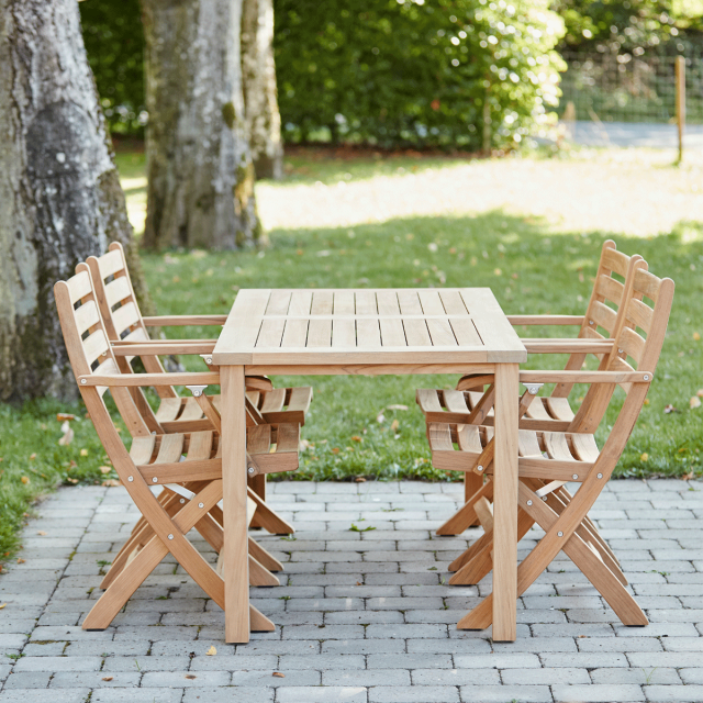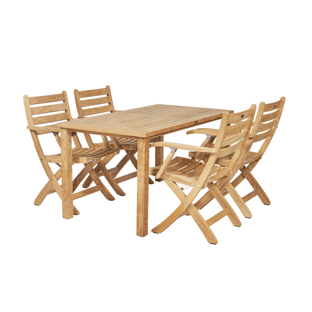 Mindre teak havemøbelsæt med smukt Cambridge bord og klassiske Dian foldestole.
