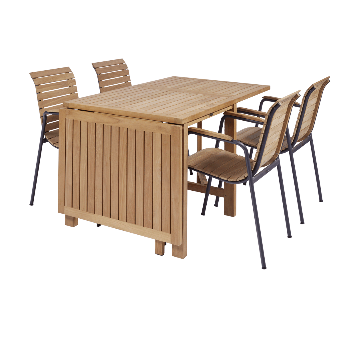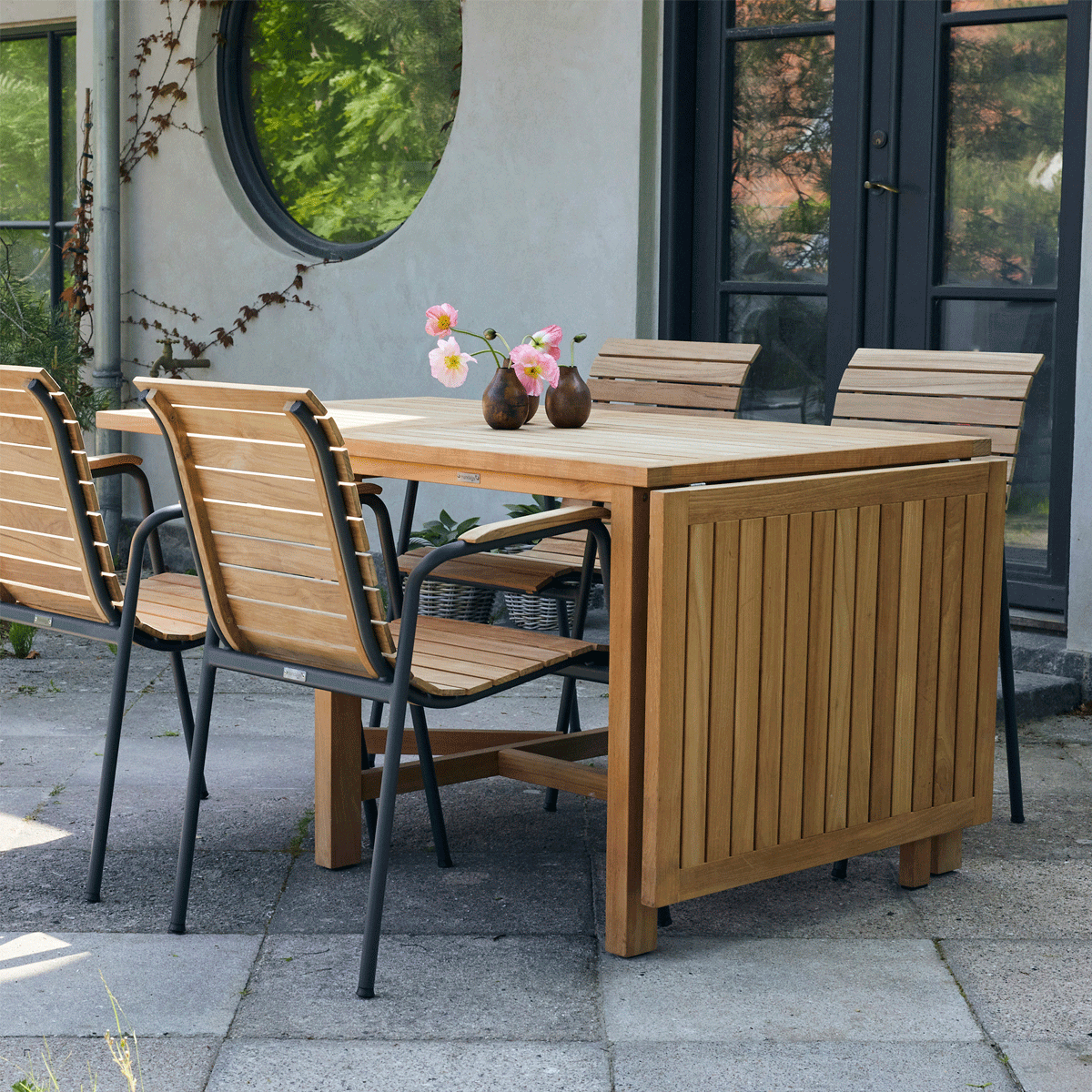 Eksklusivt havesæt i bæredygtig teak og vores nye danske haveklassiker - Bellevue-stolen med antracit stel