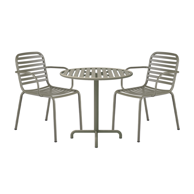 Cafésæt i vejrbestandige materialer. Ideelt cafesæt til altanen og balkonen - og til det omskiftelige danske vejr. Designet af Mathias Falkenstrøm