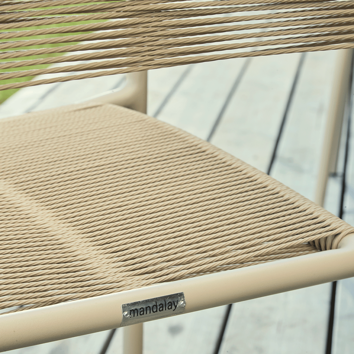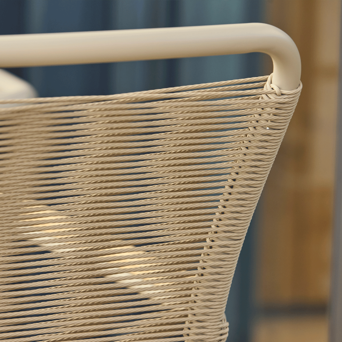 Til alle havestole med flet benytter vi den eksklusive, vedligeholdelsesfri SunLoom fibersnor med en overflade af UV-behandlet plast og en kærne af 500 polyestertråde. Det giver en både slidstærk og samtidig blød flet, der ikke falmer, ikke knækker og aldrig bliver slap.