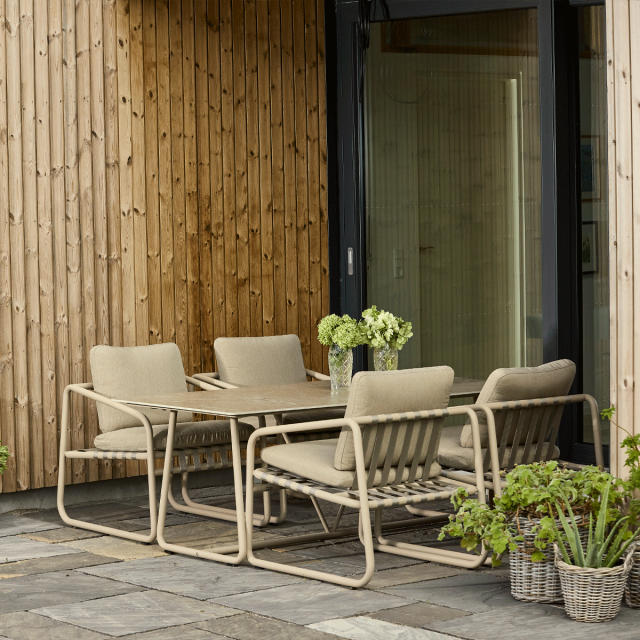 Lucca-sættet er den perfekte tilføjelse til dit udendørsområde, og det vil helt sikkert blive en favoritplads på terrassen. Det giver en hyggelig og uformel stemning som er perfekt til hyggestunder både i det sene forår, til sommeren og til det tidlige efterår.
