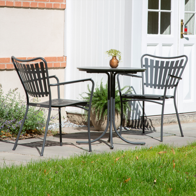 Marguerit Pure havestolen er formgivet med afsæt i den klassiske Marguerit havestol. Designet er stramt og luftigt - og materialerne er helt vedligeholdelsesfrie og kræver kun en let rengøring, når behovet opstår. Stolens kurvede sæde og komfortable ryg er begge ergonomisk designet. Pulverlakeringen er stærk og har samme nuance som vores øvrige antracitte havemøbler - så du kan helt selv vælge hvilket bord du synes passer bedst til dig, din indretning og stil.