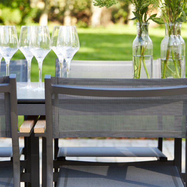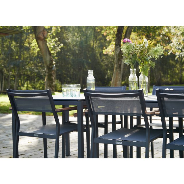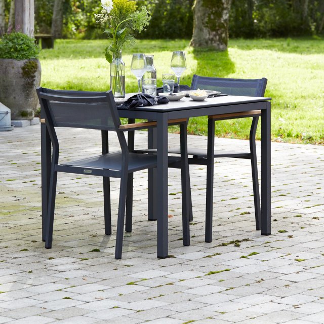 Elba-serien består af både havestol, liggestol og vedligeholdelsesfrie haveborde i flere størrelser. Elba stolens teakarmlæn gør den dog også til et naturligt valg til et Toscana havebord