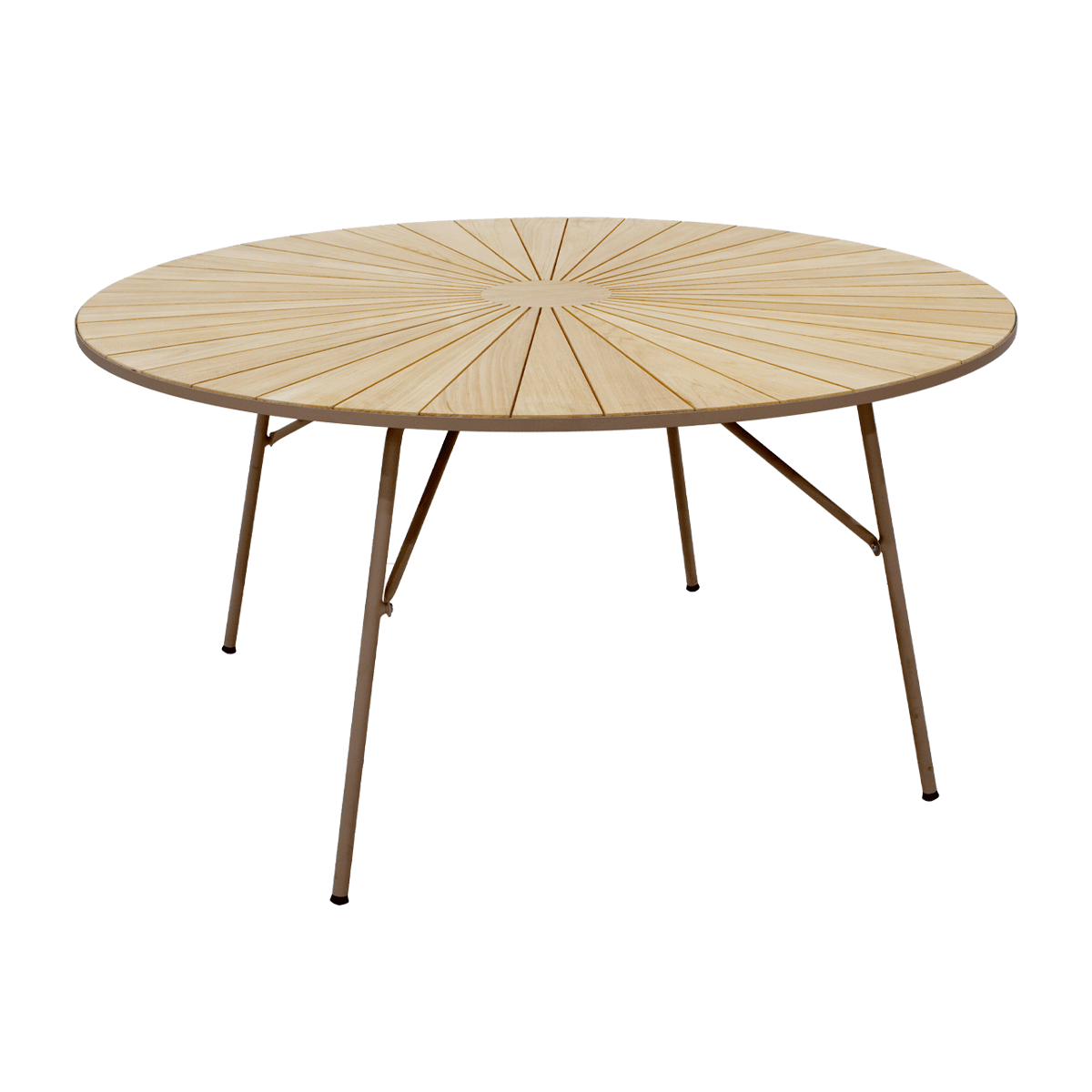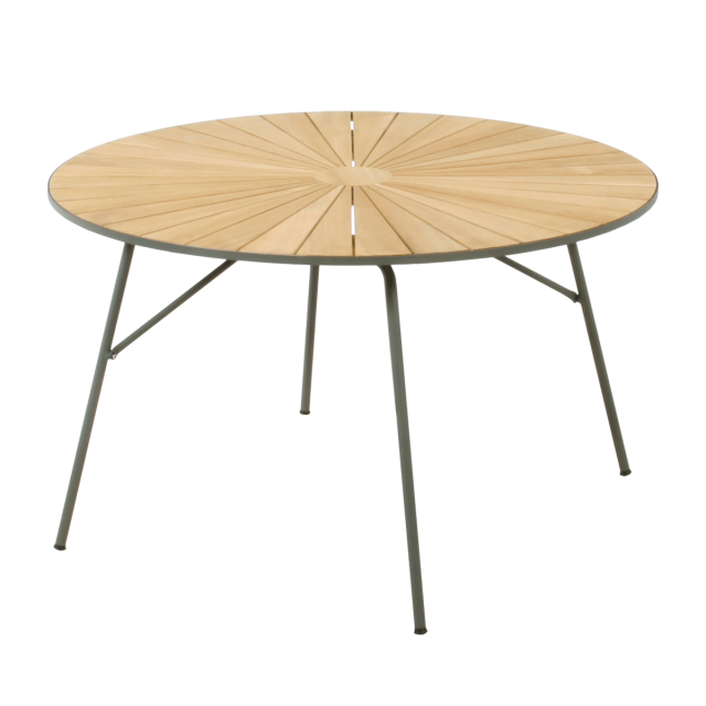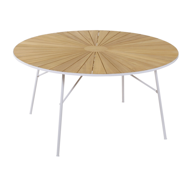 Eksklusivt havebord i den klassiske Marguerit havemøbel-serie. Bordpladen er i massiv teak med ramme og stel i rustfrit aluminium. Benene kan foldes. Marguerit-bordet måler 140 cm i diameter. Rigeligt med plads til 4 til 7 personer.