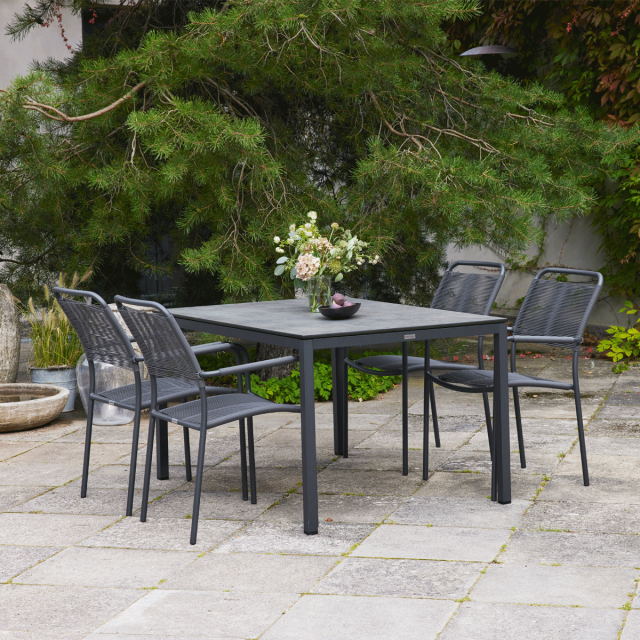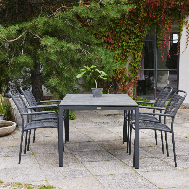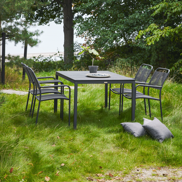 "Pure" er navnet på vores række af havemøbler, der kun kræver lidt eller slet ingen vedligeholdelse. Her finder du blandt andet vores kendte Elba bordserie. Fælles for alle havebordene under Pure-linjen er, at de har en bordplade i et slidstærkt og ridsefast materiale - kompaktlaminat - der tåler det omskiftelige danske vejr. Den mørkegrå bordplade har en overfladeimprægnering, der giver et flot spil i udtrykket - også når solen ikke skinner. Oplev hele Pure-linjen her