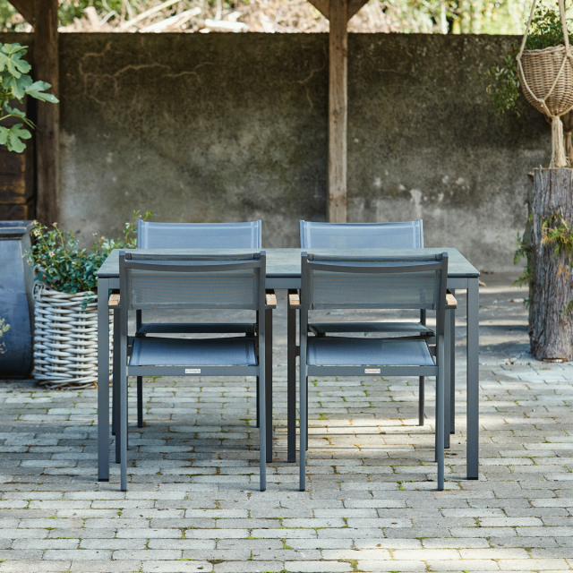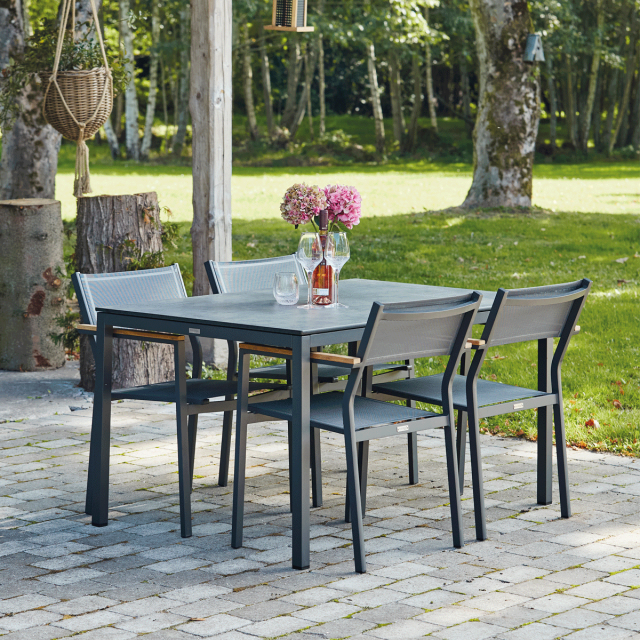 Elba bord-serien hører flot sammen med både Elba havestolen og med Elba liggestolen.