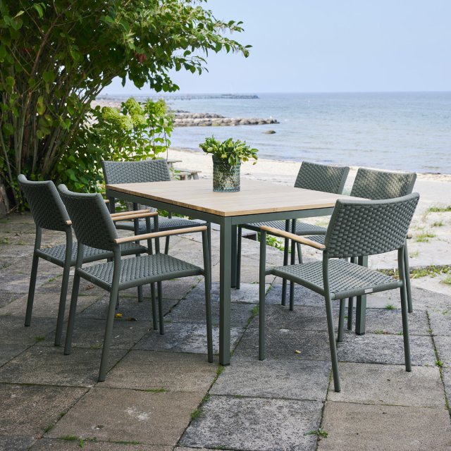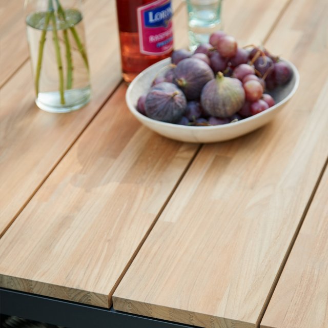 Smukt og praktisk Toscana havebord med stor bordplade i bæredygtig indonesisk teak og stel i aluminum. Bordet har en længde på 132 cm og en bredde på 90 cm. Toscana havebordet er populært, som havemøbelsæt med Toscana havebænk - eller med 4 havestole. Har du et Toscana havebord med antracit stel, så kan du med fordel kombinere med en Toscana havebænken på 109 cm. Bænkene kan skubbes inde under bordet, så du har et lækkert bord-og-bænke-sæt. Bænkene fås kun med antracit stel.